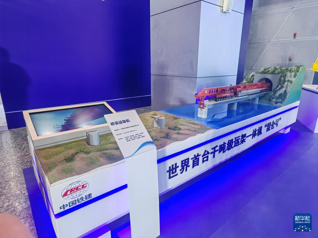 在第十四届中国国际专利技术与产品交易会上展出的“昆仑号”桥梁运架机模型。新华社记者徐鹏航 摄