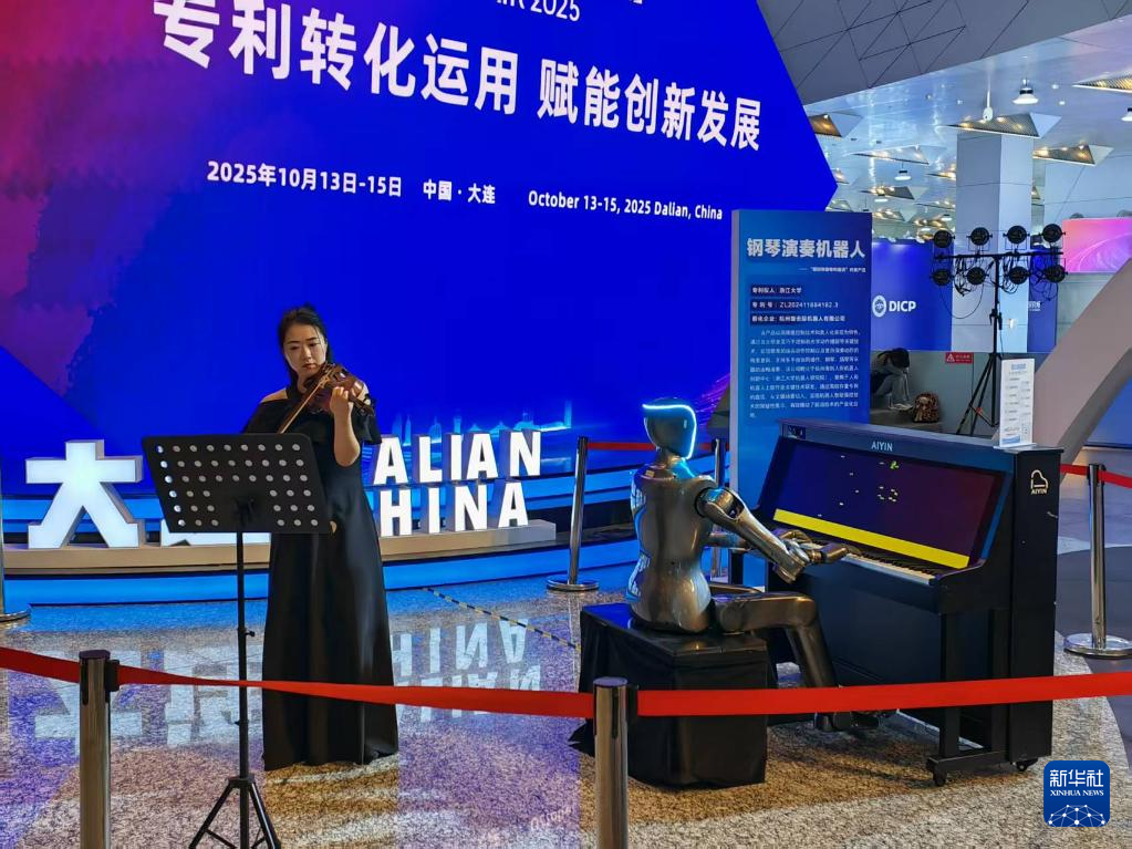 在第十四届中国国际专利技术与产品交易会上展出的钢琴演奏机器人。新华社记者张博群 摄