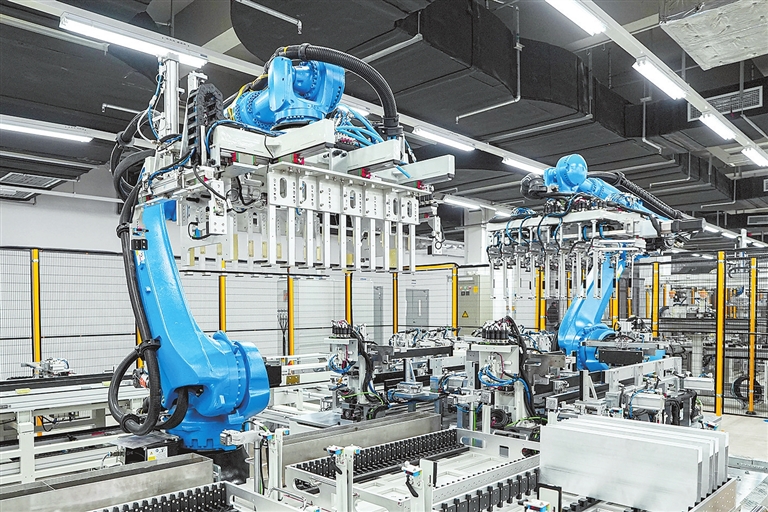 富士康新能源电池公司全自动化产线。 记者 徐聪 摄