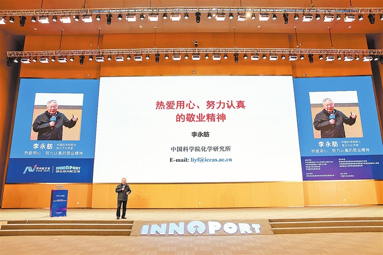 中国科学院院士、高分子化学家李永舫以《热爱用心、努力认真的敬业精神》为题作主题演讲。李永舫讲述了自己的“创业”经历,认为“热爱”是最好的老师,要干一行、爱一行;无论做什么事情都需要有清晰的思路,要勤动脑筋、“用心”做事;天道酬勤,通向成功之路的捷径是“努力”;在做事方面要“认真”,做到一丝不苟——只要“热爱+用心+努力+认真”,必然创业成功。