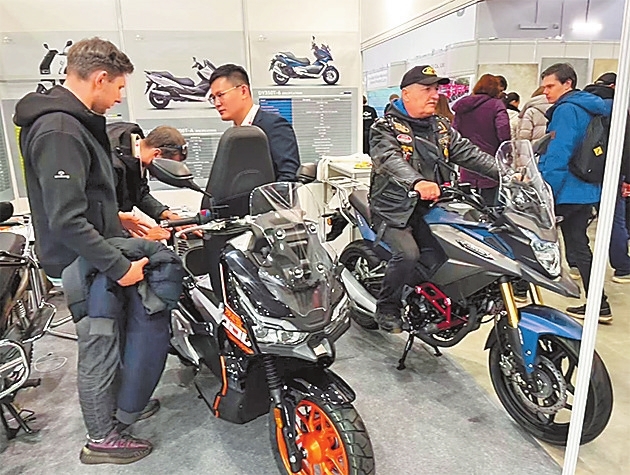 国际展会上,洛阳北方易初摩托车有限公司展台吸引来外国客商的目光。 受访者供图