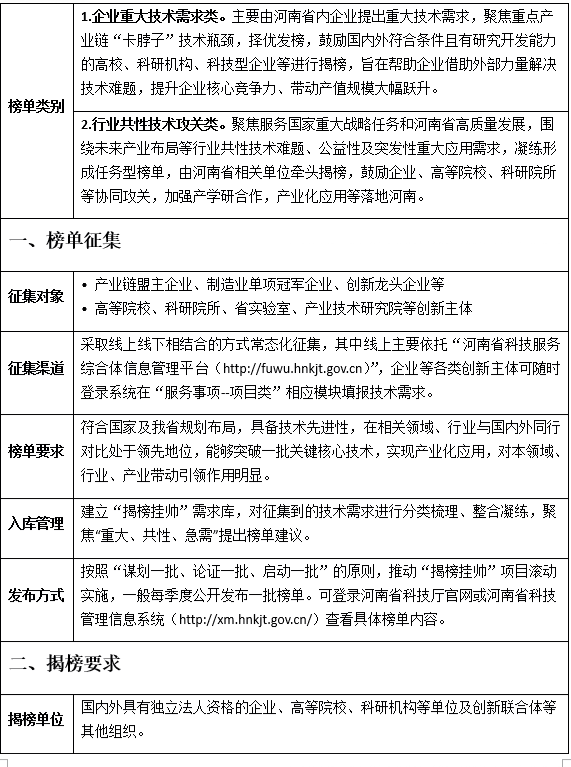 河南省重大产业关键技术攻关“揭榜挂帅” 项目申报明白卡(2026年4月版)
