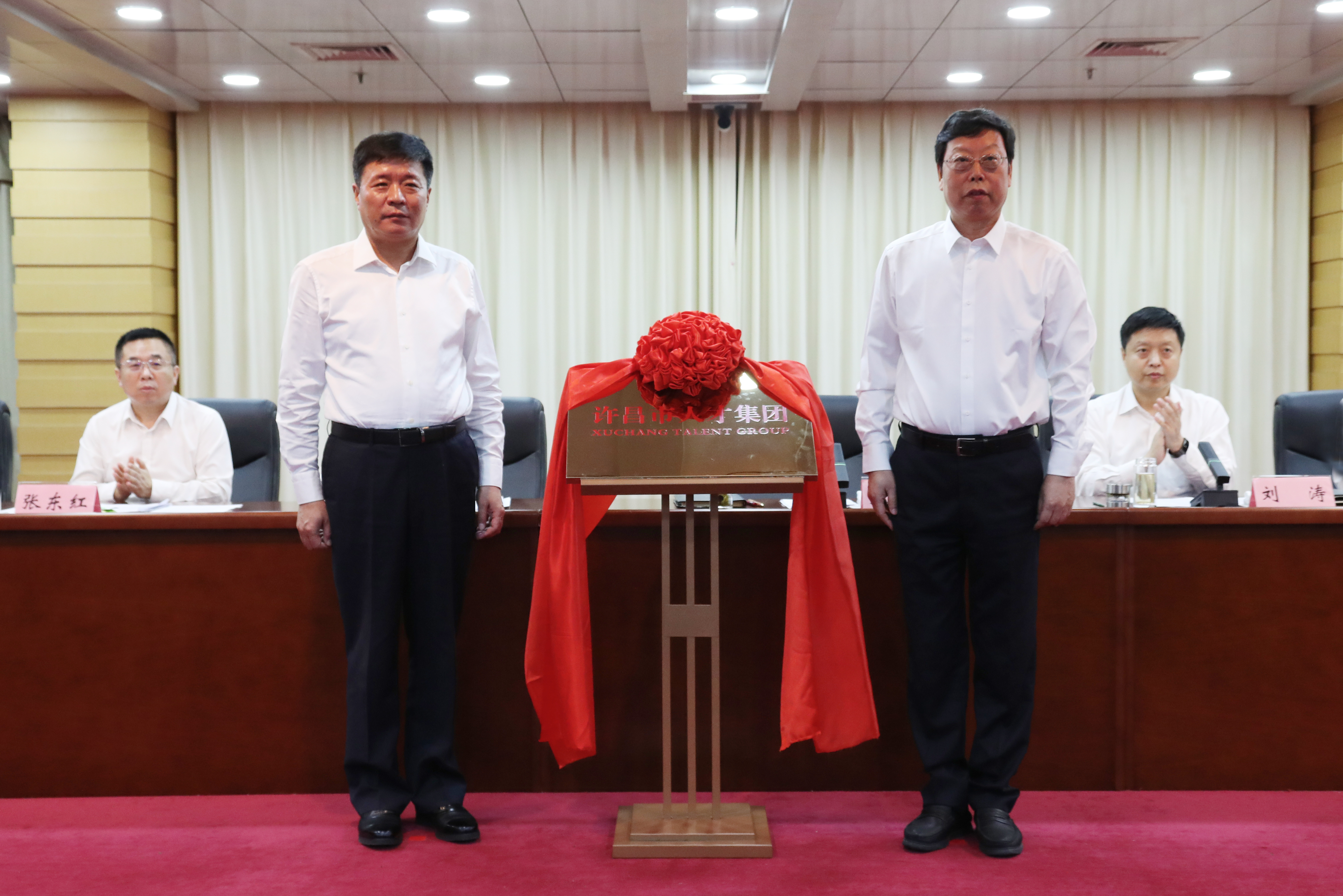 9月14日上午,市委书记史根治(左)和河南投资集团总经理闫万鹏为许昌市人才集团揭牌。